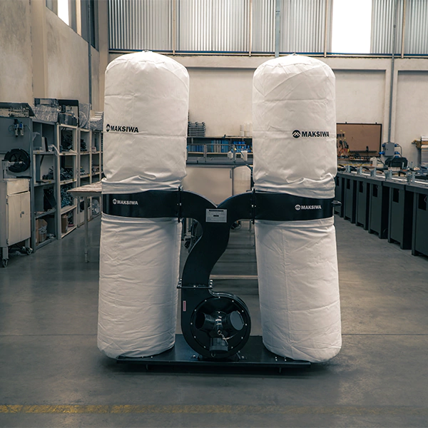 Os Coletores de Pó Maksiwa possuem rodas para facilitar a movimentação em sua oficina.